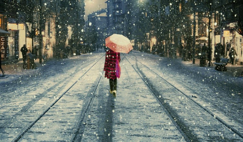Wallpaper The girl in the rain goes away on the street