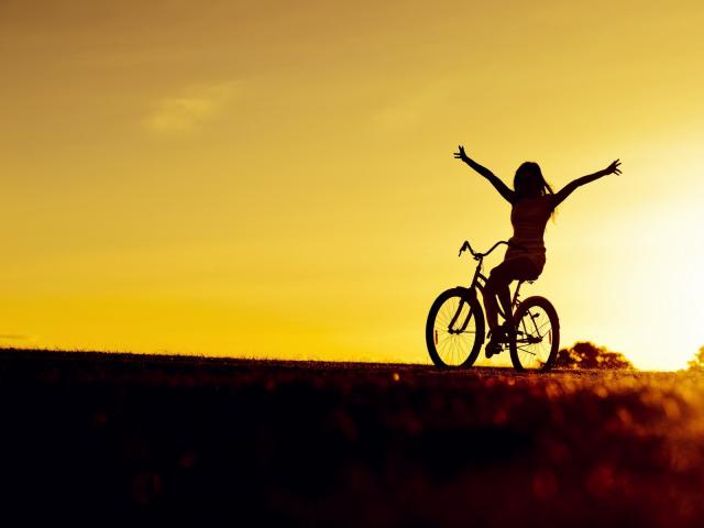 Wallpaper Girl on bike at sunset