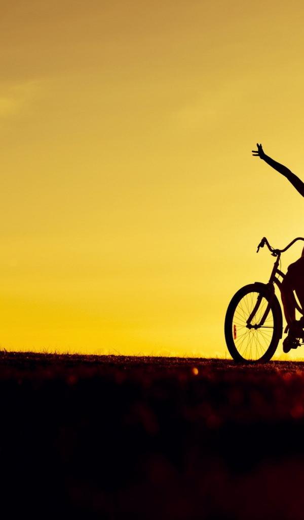 Wallpaper Girl on bike at sunset