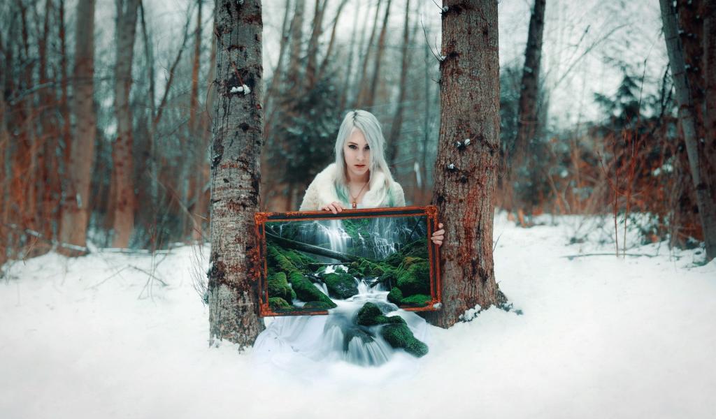 Wallpaper Girl in the winter forest in summer picture