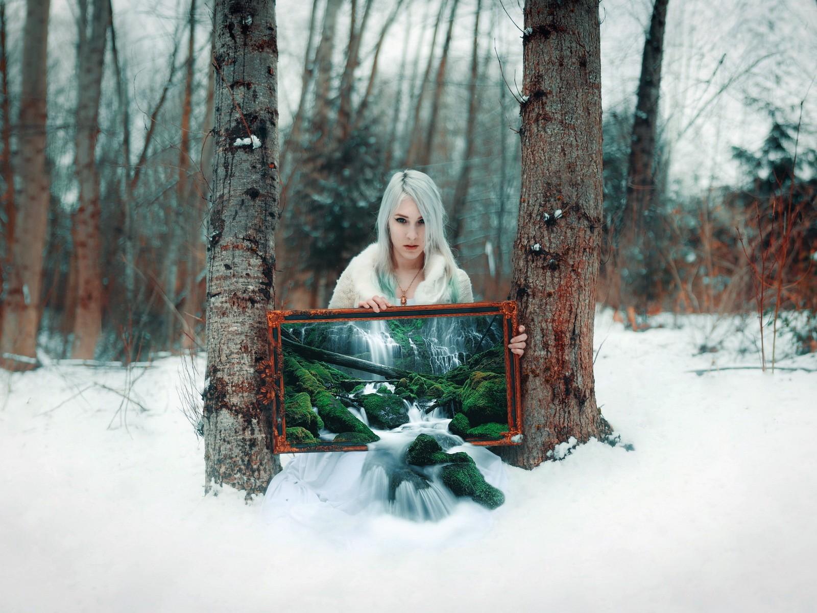 Wallpaper Girl in the winter forest in summer picture