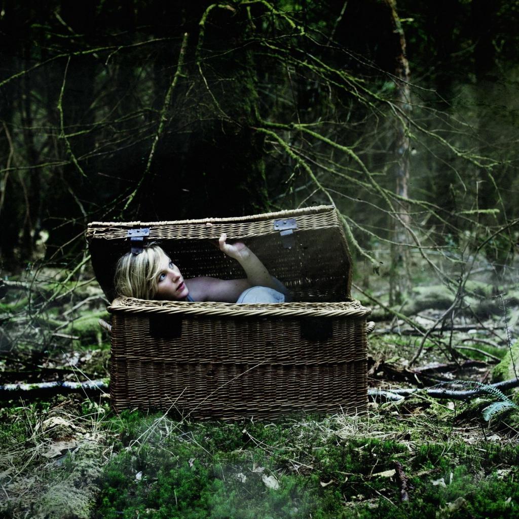 Wallpaper The blonde in a basket in the woods