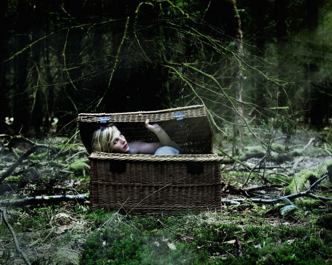 Wallpaper The blonde in a basket in the woods