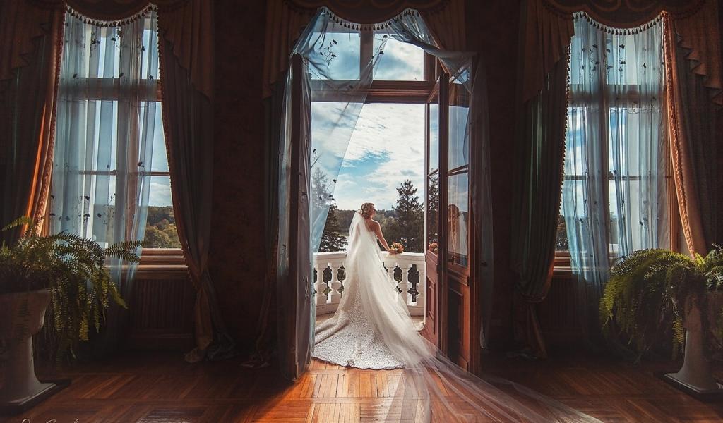 Wallpaper Bride standing on balcony