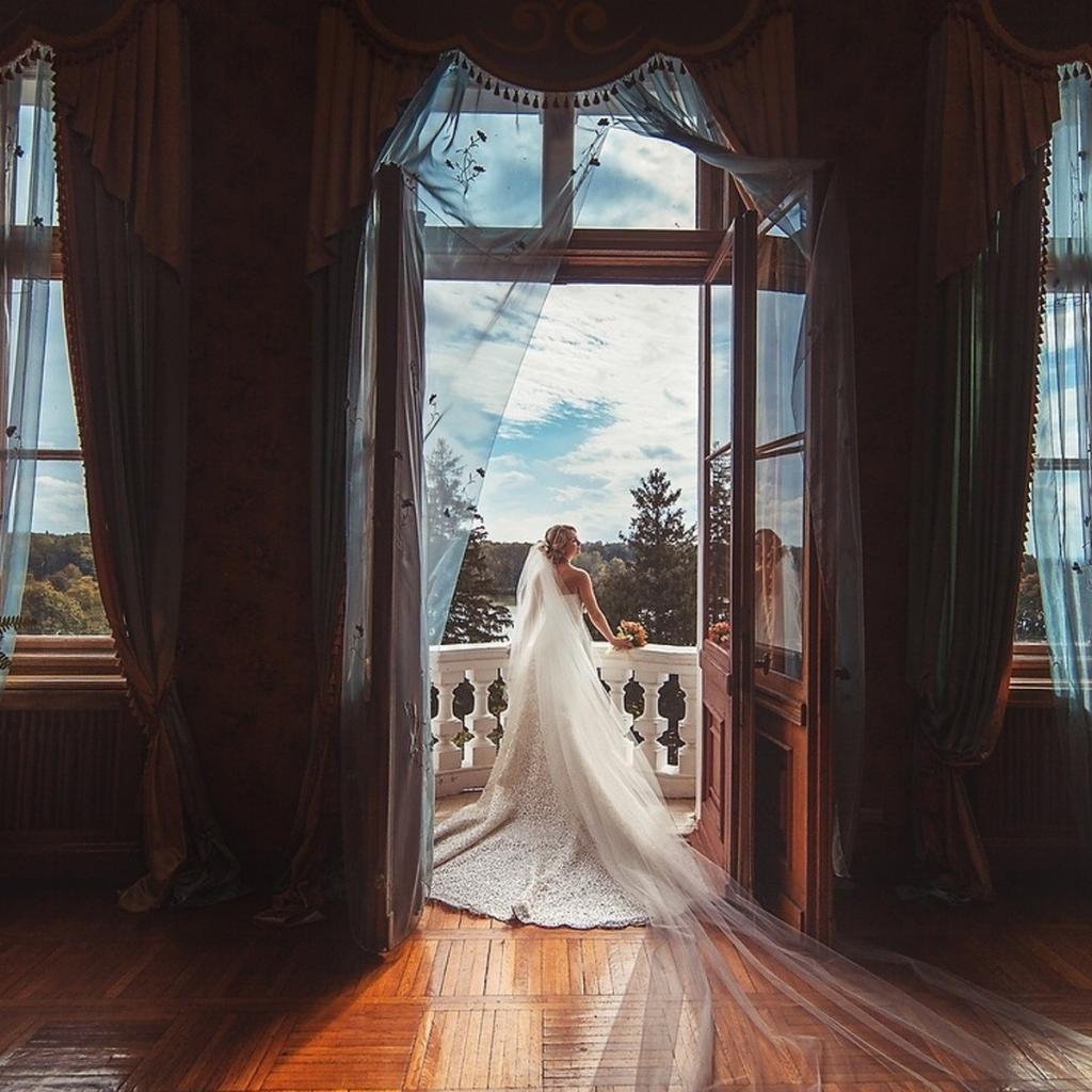 Wallpaper Bride standing on balcony