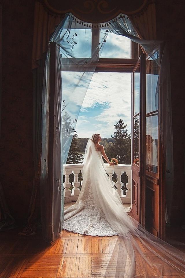 Wallpaper Bride standing on balcony
