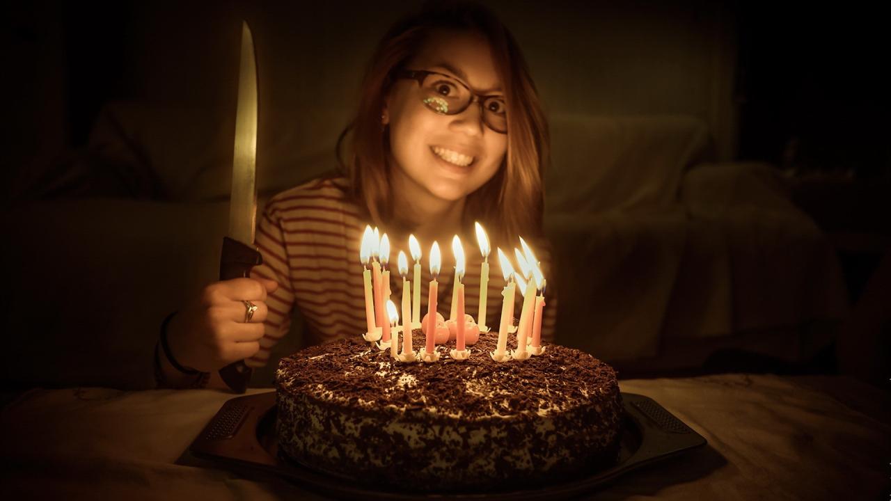 Wallpaper The girl with a knife in a celebratory cake