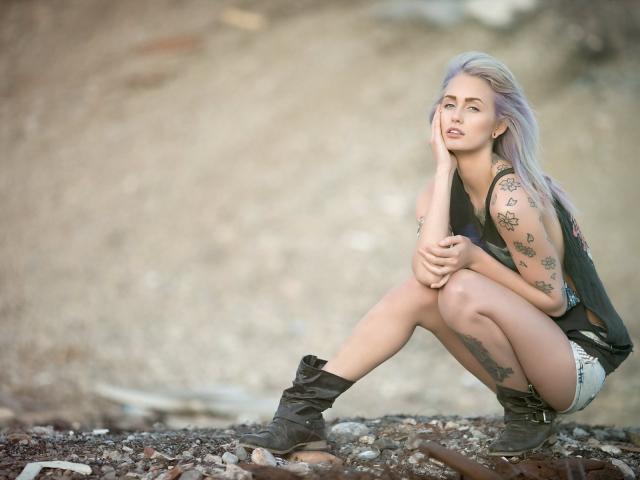 Wallpaper The girl with a tattoo in the shape of flowers sitting on his haunches