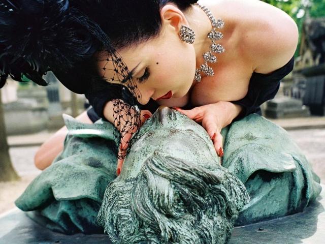 Wallpaper Girl on a sculpture