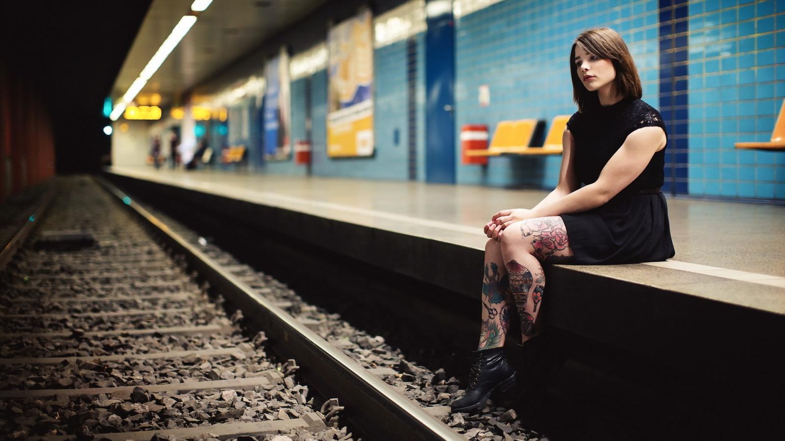 Wallpaper A girl waiting for a train at a subway station