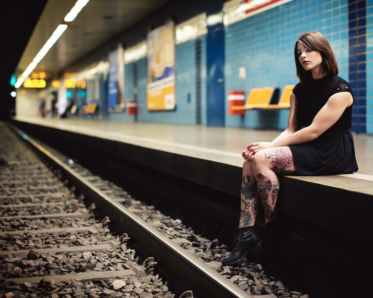 Wallpaper A girl waiting for a train at a subway station
