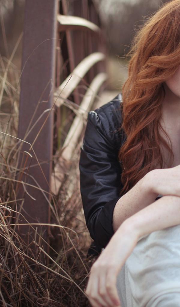 Wallpaper A girl in a leather jacket sitting at the wooden bridge