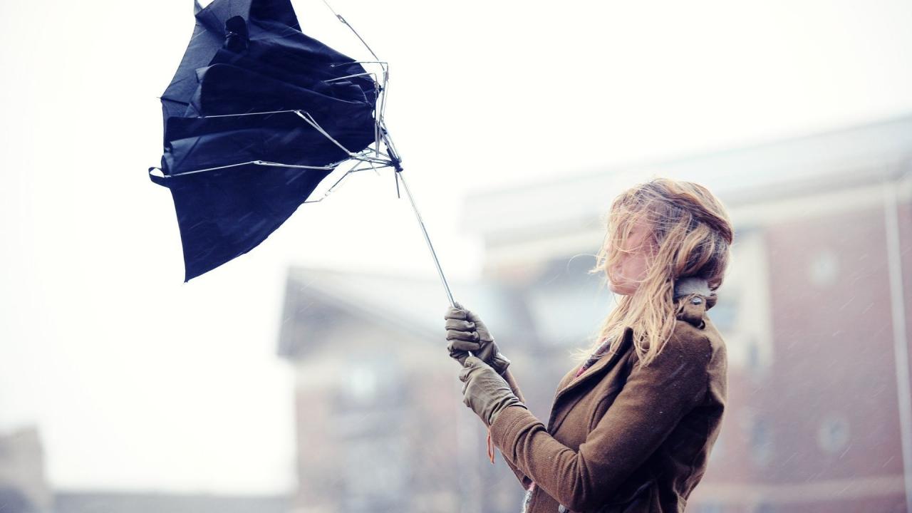 Wallpaper The girl broke down under the pressure of the wind umbrella