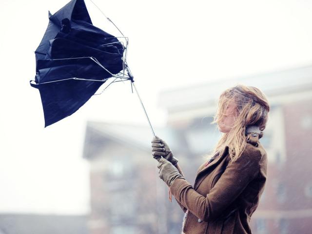 Wallpaper The girl broke down under the pressure of the wind umbrella