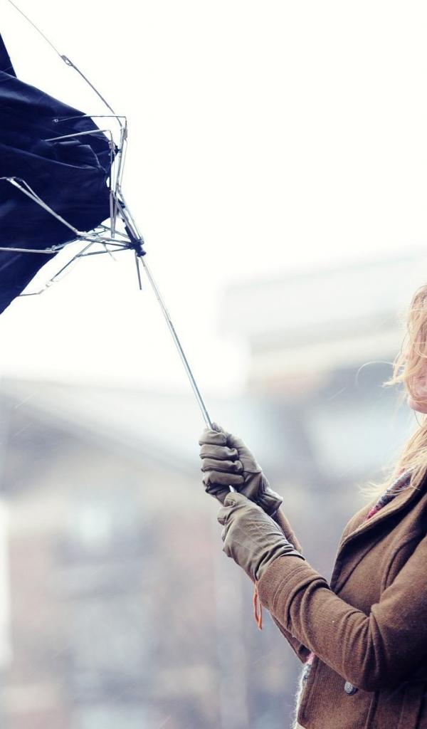 Wallpaper The girl broke down under the pressure of the wind umbrella