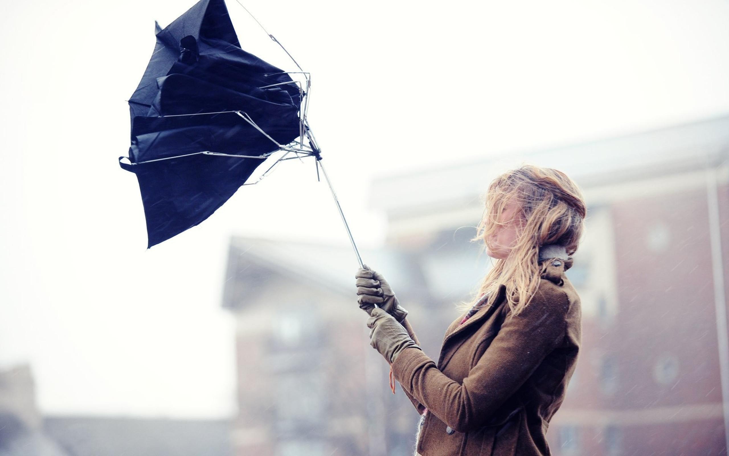 Wallpaper The girl broke down under the pressure of the wind umbrella
