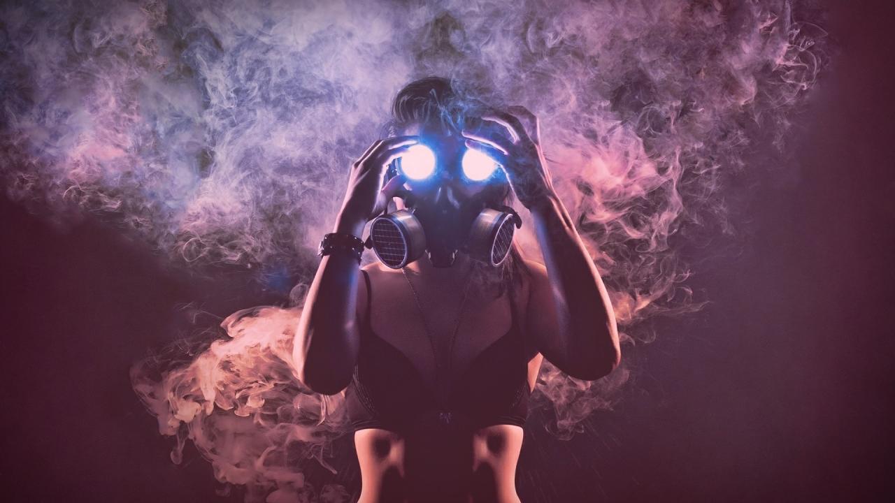 Wallpaper Girl in mask surrounded by smoke