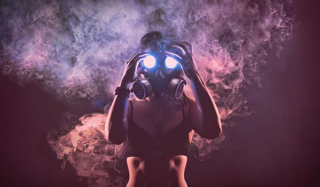 Wallpaper Girl in mask surrounded by smoke