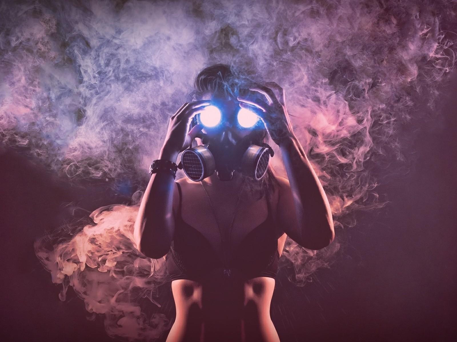 Wallpaper Girl in mask surrounded by smoke