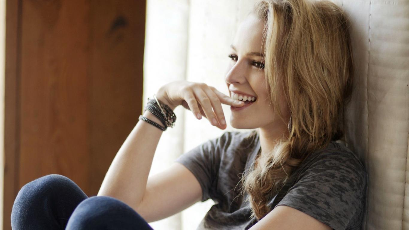 Wallpaper Laughing blonde put her finger to her lips