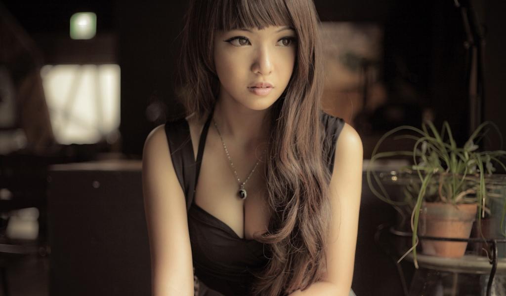 Wallpaper Asian girl in a brown dress