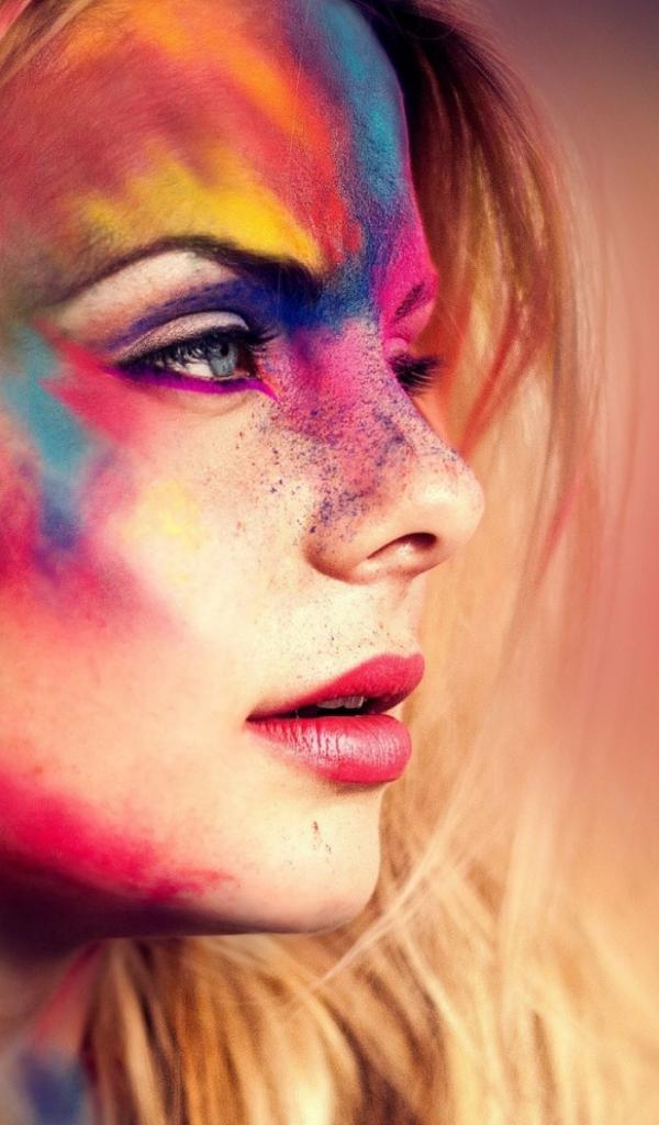 Wallpaper Bright colors on the face and hair of a girl