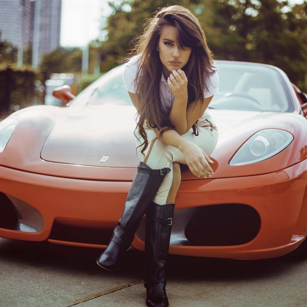 Wallpaper Girl sitting on the hood of the orange Ferrari