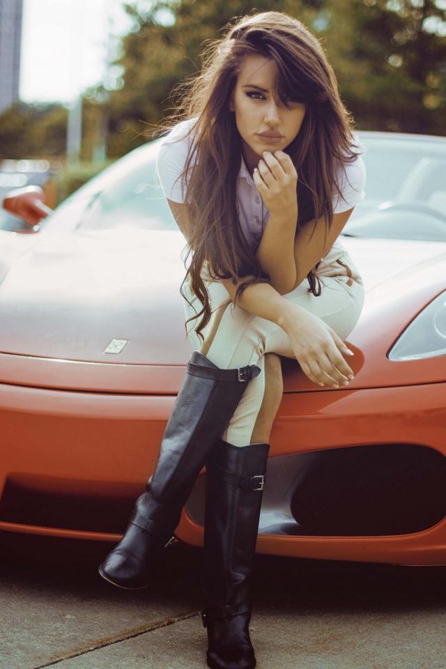 Wallpaper Girl sitting on the hood of the orange Ferrari