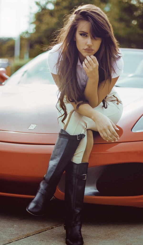 Wallpaper Girl sitting on the hood of the orange Ferrari