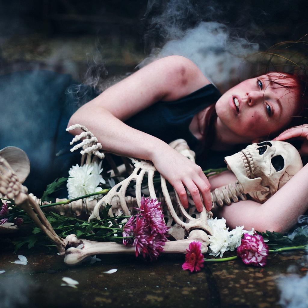 Wallpaper Girl hugging skeleton