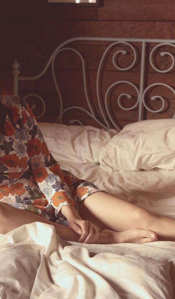 Wallpaper Girl in the hat on the bed