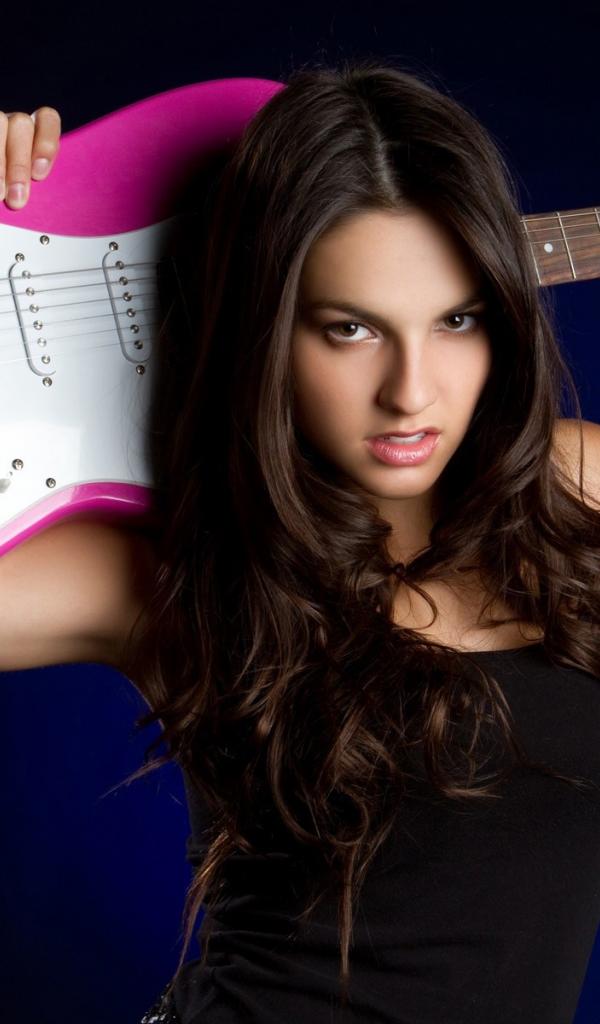 Wallpaper Pink guitar on the shoulders of the girl