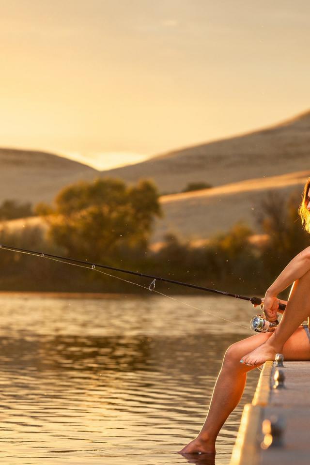 Wallpaper Girl with a fishing rod fishing