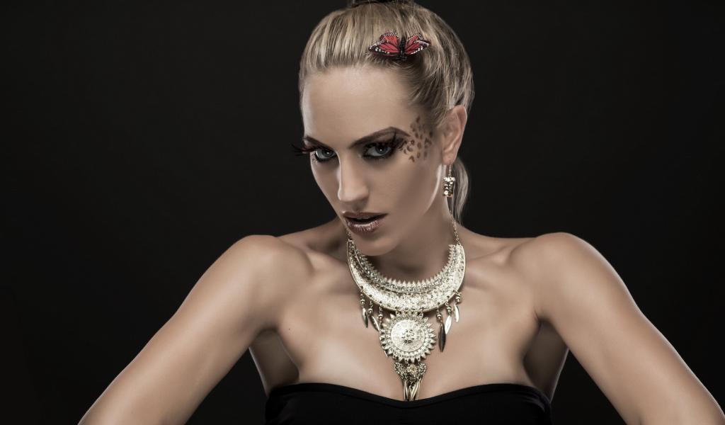 Wallpaper Girl model with a massive ornament on the neck