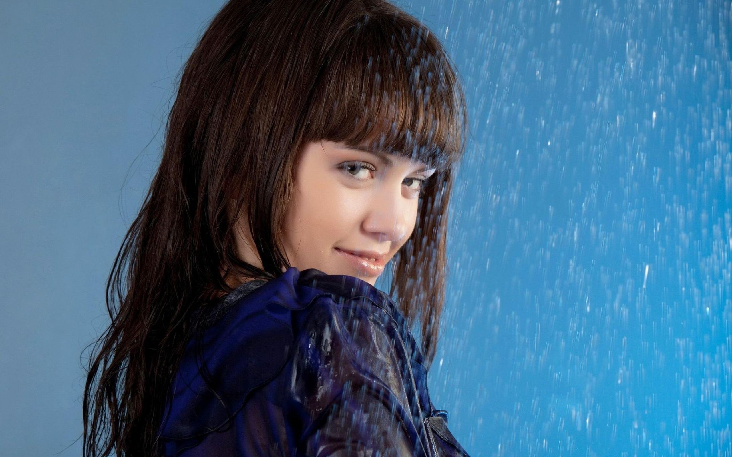 Wallpaper Girl standing under running water