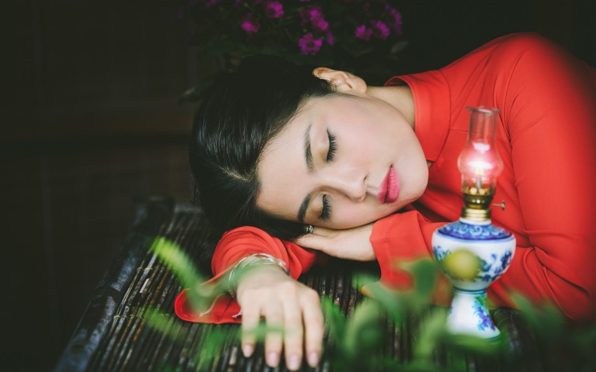 Wallpaper Asian asleep with his head on his hands