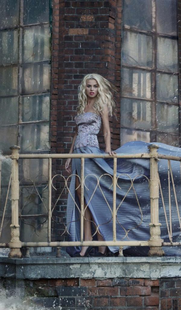 Wallpaper Girl in dress standing on the balcony of the lighthouse