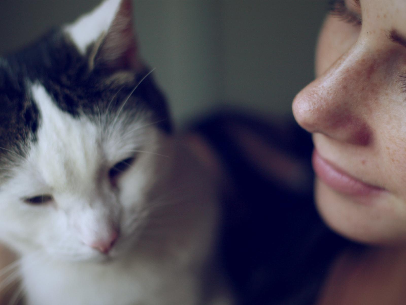 Wallpaper The girl looks at her cat with love
