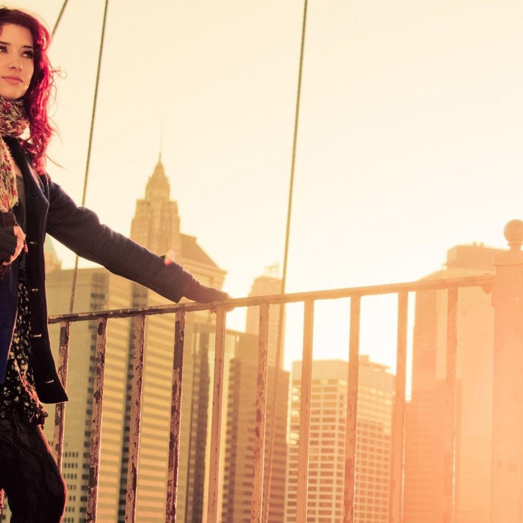 Wallpaper Girl with red hair standing at the rail