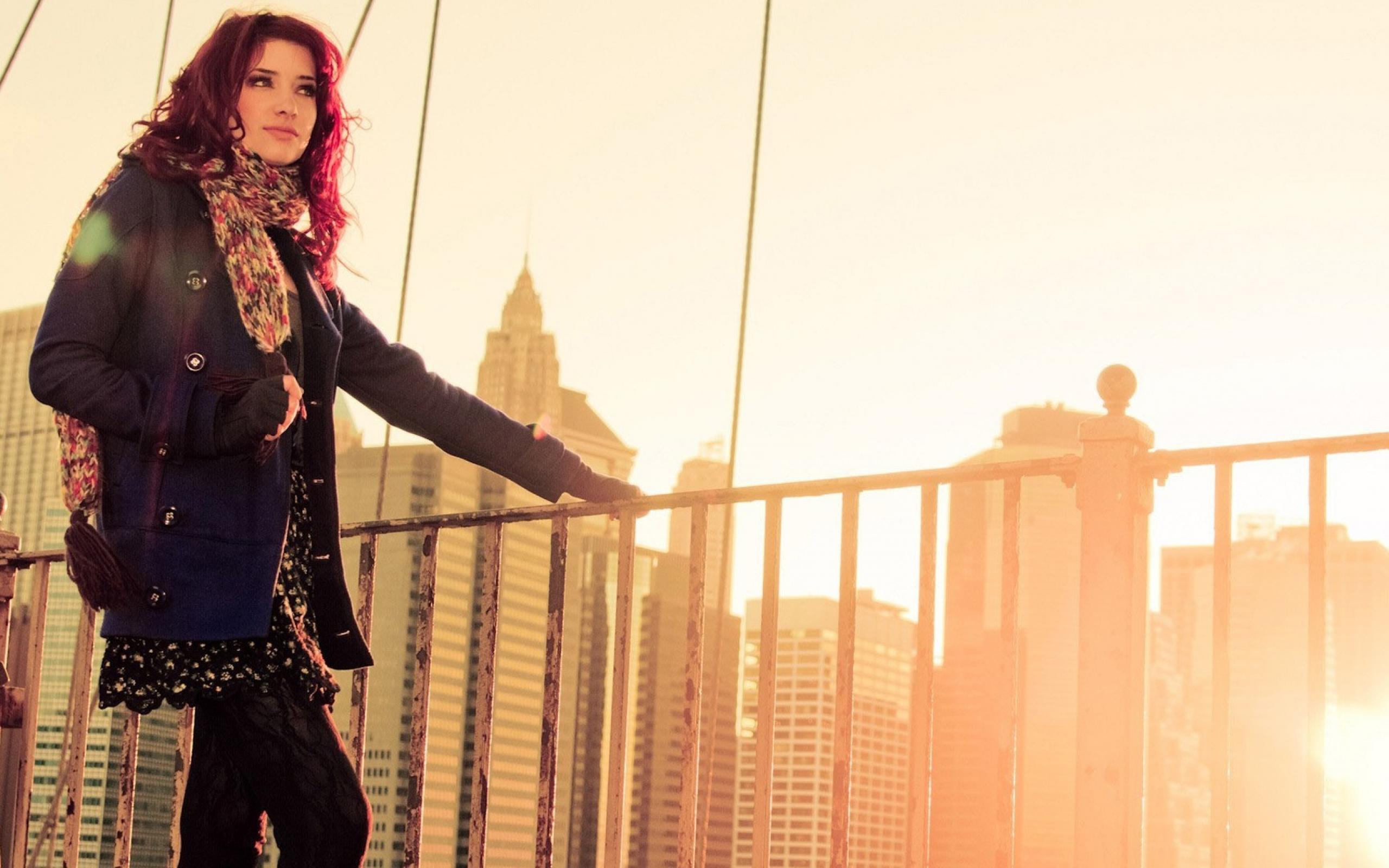 Wallpaper Girl with red hair standing at the rail