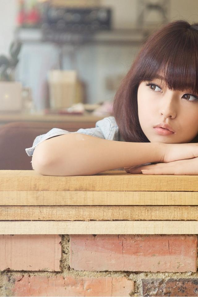 Wallpaper Asian model looking out the window