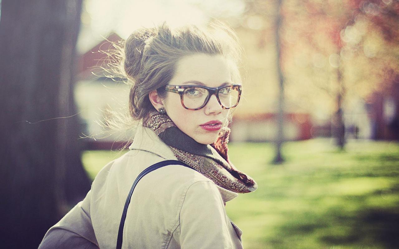 Wallpaper Girl with glasses looked over her shoulder