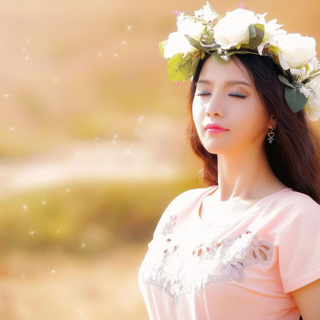 Wallpaper Girl in white wreath closed her eyes