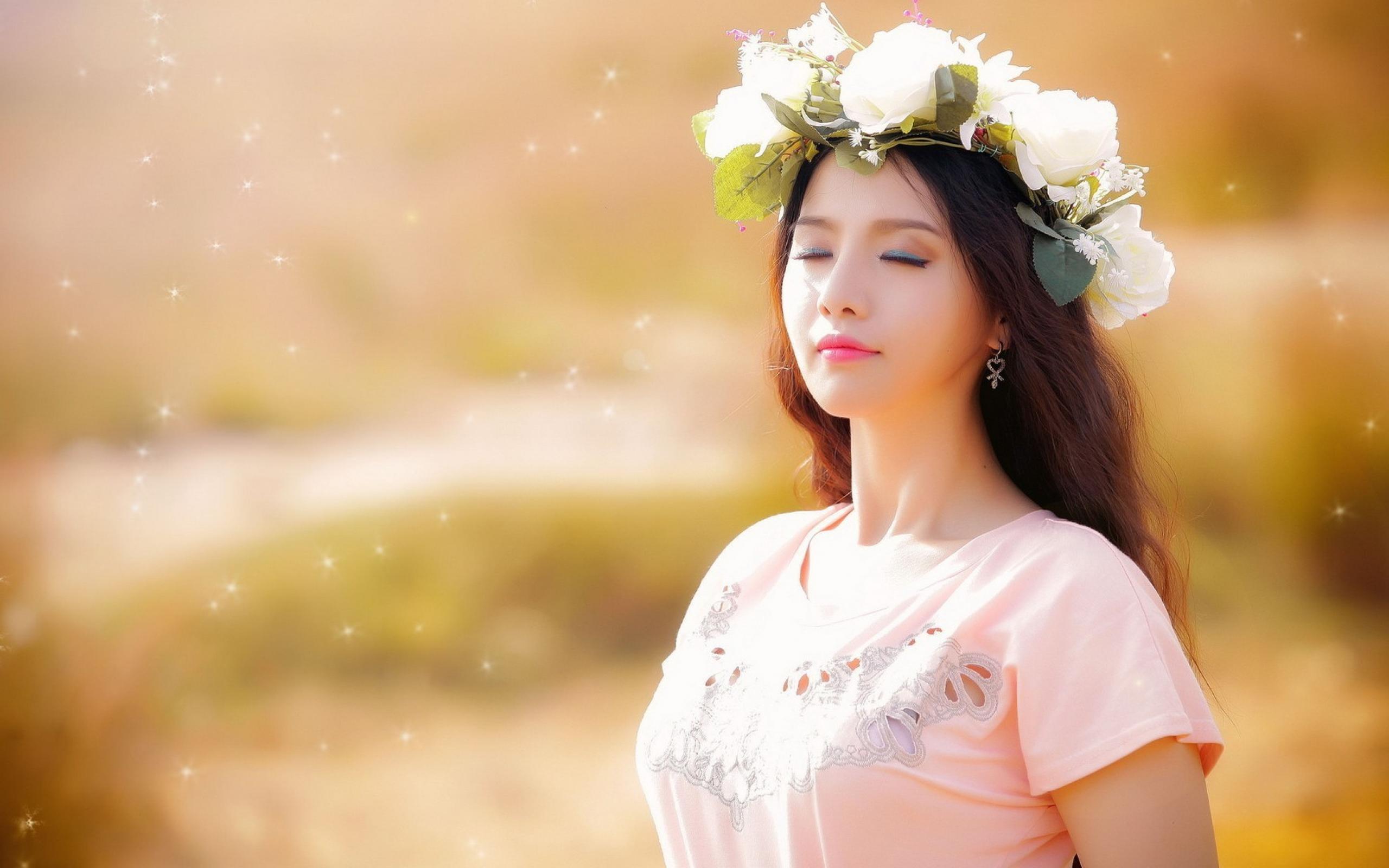 Wallpaper Girl in white wreath closed her eyes