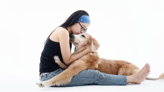 Wallpaper Japanese woman hugging her dog