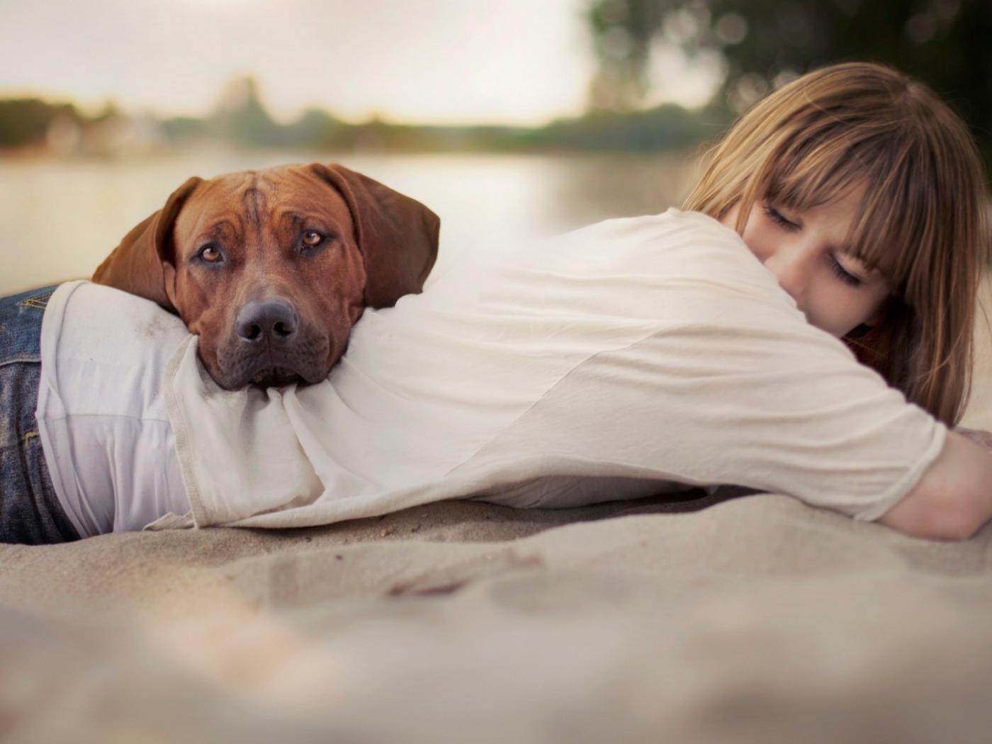 Wallpaper Dog rested her head on his back girl