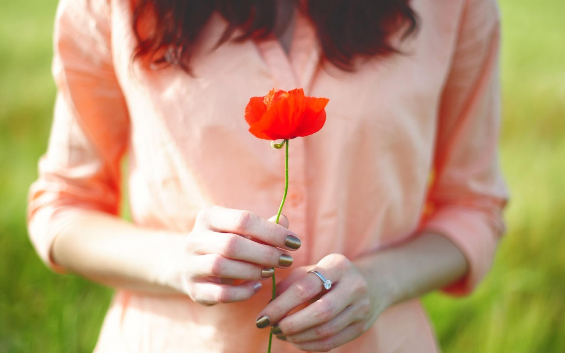Wallpaper Poppy in the hands of the girl