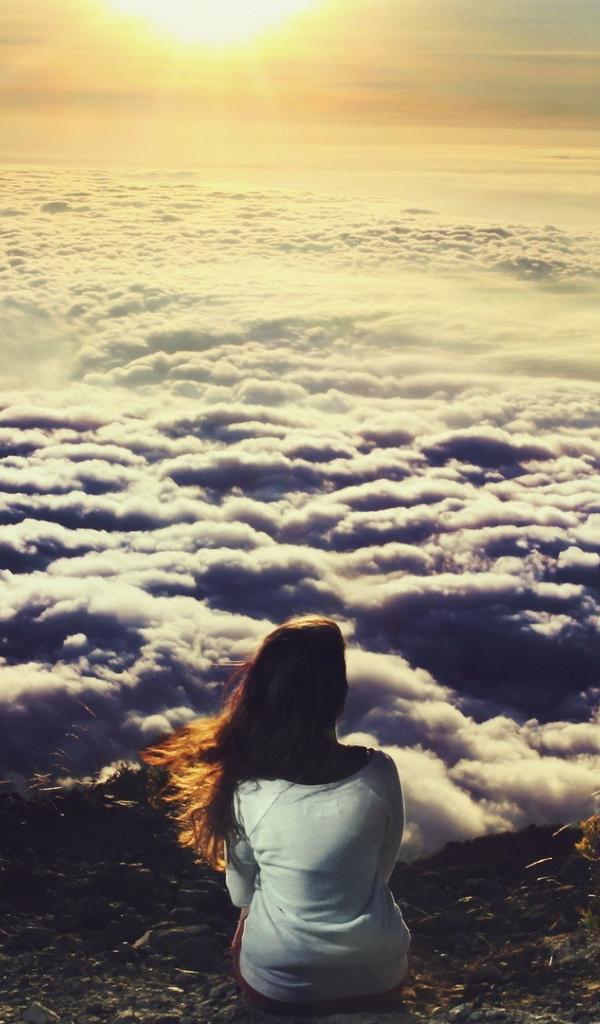 Wallpaper Girl sitting and looking at the clouds