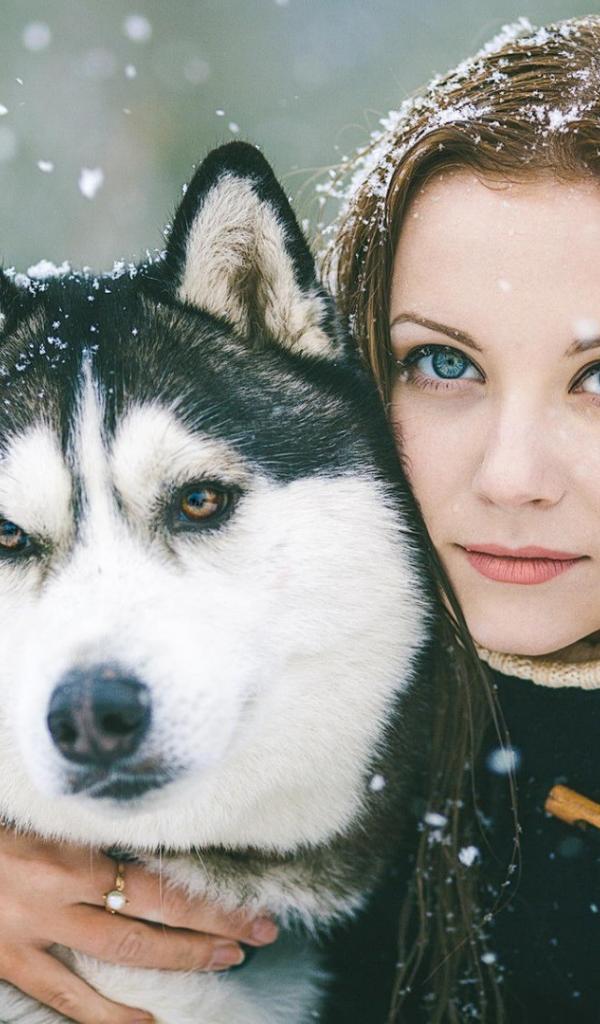 Wallpaper The girl hugged the dog Laika