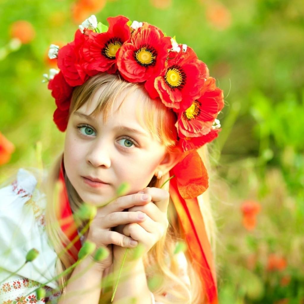 Wallpaper Girl in a wreath of poppies